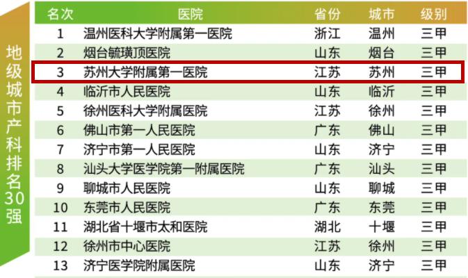 产科30强位列第3