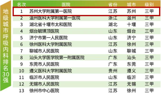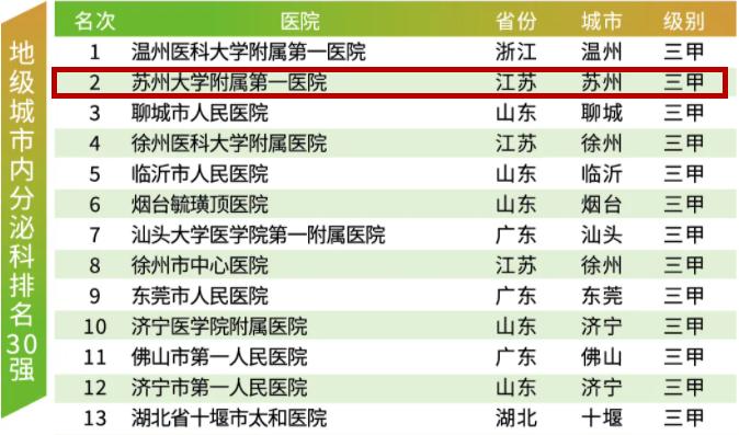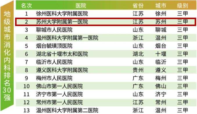 苏大附一院再次荣获榜首