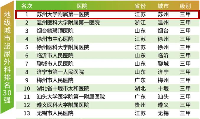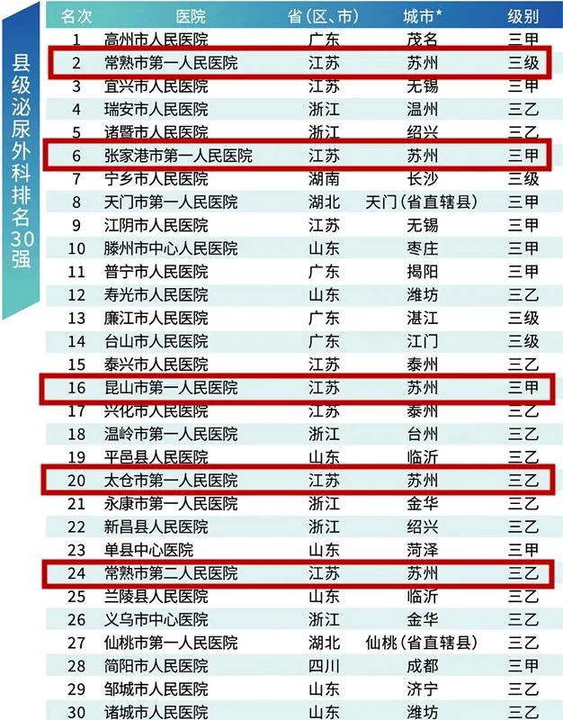 县级泌尿外科排名30强