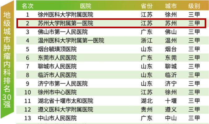 苏大附一院表现亮眼