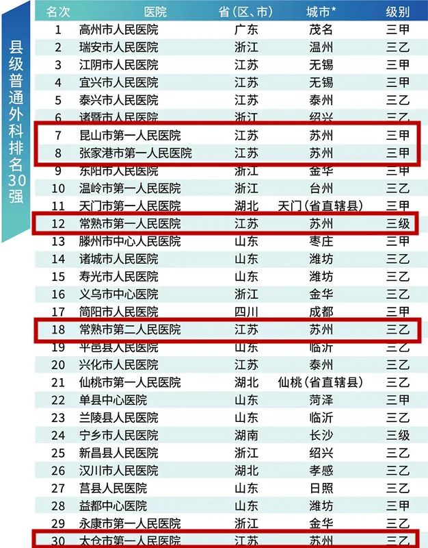 县级普通外科排名30强