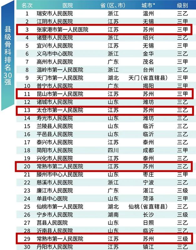 县级骨科排名30强