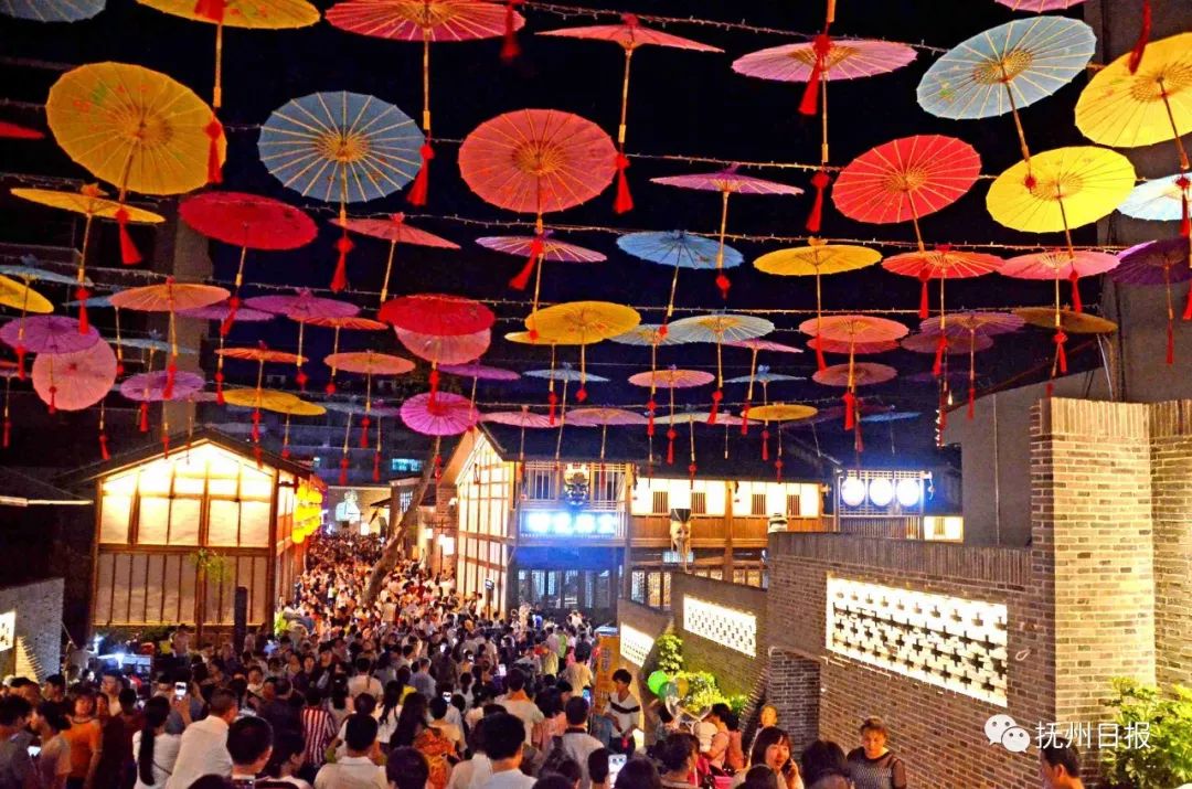 在开阔整洁的文昌里街区行走,数着脚下的石板路,看着道路两旁整齐的店铺,空中悬挂着一排排彩色油纸伞随风飘摇十分抢眼,各种抚州当地特色小吃琳琅满目。如自古就被列为贡品的麻姑米粉、辣到让你欲罢不能的临川牛杂、口味多样的临川菜梗、甜而不腻的藕丝糖等。每一口下去都是地道的“抚州味道”,让你吃完还想兜着走。除此之外,游客还可以共同参与小吃的制作过程,如米粉的制作和打糍粑,游客可获得生动有趣的互动体验。