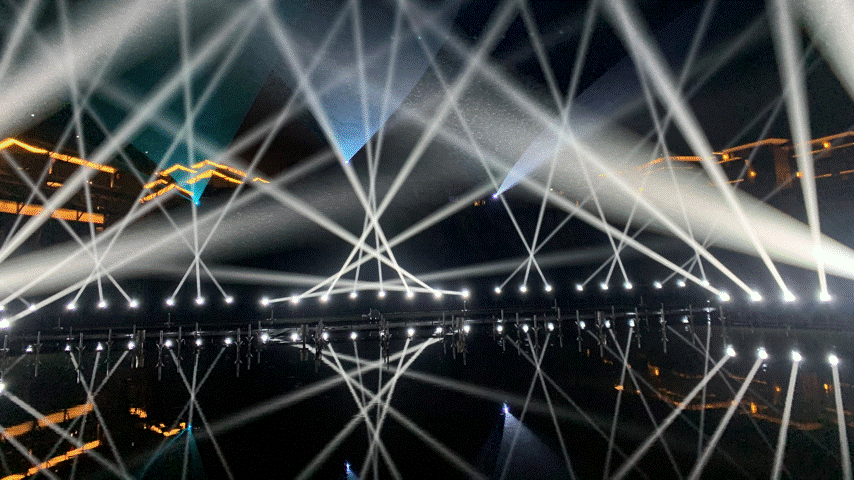 在用完美味可口的斋饭后大家赶紧下山,令人期待的葛仙村灯光秀和水幕电影即将开始。当再次踏进灵宝仙街时,已是华灯璀璨,五颜六色的花灯高高悬挂在街道上空,游客在灯光中穿梭流动,与白天相比更有诗情画意。灯光秀和水幕电影主要围绕众妙阁与边上的水舞台而设计布置,众妙阁是景区的制高点,主楼高26米,采用古代建筑结构,为三层四柱的纯木结构。灯光表演先从“亮阁”开始,当流光溢彩的科技灯光聚焦投影在众妙阁上,众妙阁顿时变得神采奕奕,似乎披上了七彩神衣。多彩灯光随着古典音乐不断魔幻地变动,呈现出春、夏、秋、冬等不同精美画面,加上阁楼上下还有舞蹈演员们随之翩翩起舞,众妙阁仿佛也在情不自禁地灵动起来。