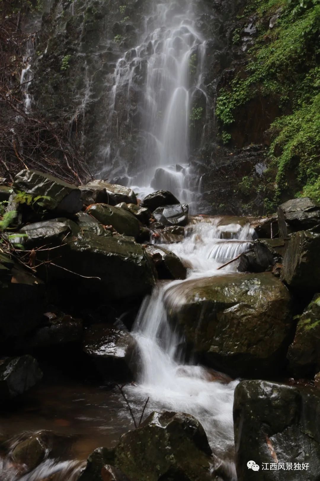 石,给人以静气;水,则给人以灵气。江南湿润,灵山的奇石之间,竟然也还蕴含了那一叠叠、一汪汪的秀水。水从一个个的奇石中渗透出来,渐渐汇成涓涓细流,或成涌泉,或形瀑布,或聚为湖泊。灵山之泉以峰顶之泉最负盛名,如石屏峰龙泉、东台峰瓢泉、百合峰涌泉、中台峰龙尾泉等,均位于峰巅之上,泉水汩汩,终年不涸。峰顶之泉水从高处坠落,形成了灵山36处较大规模的瀑布,其中位于水晶山景区的水晶瀑布,依山数叠,形如飞练挂天,声如万钧雷霆,落差达230余米,是江南花岗岩山体中最高的瀑布。涓涓细流在低洼处汇集,形成了数个海拔千米的湖泊。茗洋湖面积近3000亩,是典型的高峡平湖,碧波荡漾,山环四周;玉女湖则似小家碧玉,小巧玲珑,水质清澈见底。