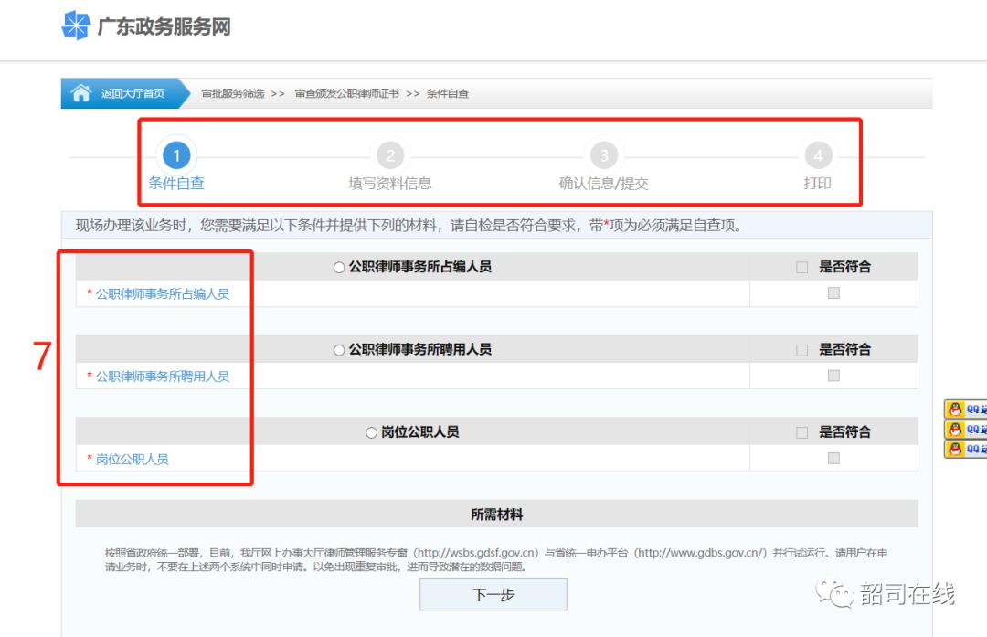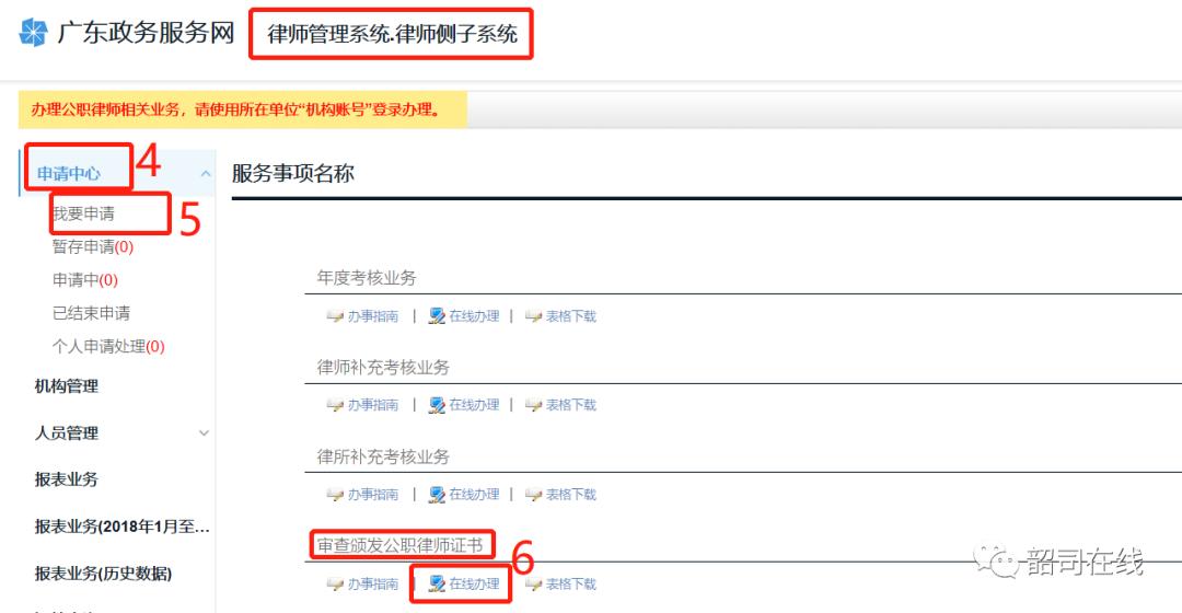 温馨提示:受理机关在线预审核通过申请人的申请材料后,申请人才按要求提交纸质申请材料,纸质材料必须与网上提供的材料一致。申请人可以快递申请材料(地址:韶关市浈江区环园东路3栋韶关市司法局律师工作管理科),也可以到韶关市司法局律管科递交纸质申请材料。