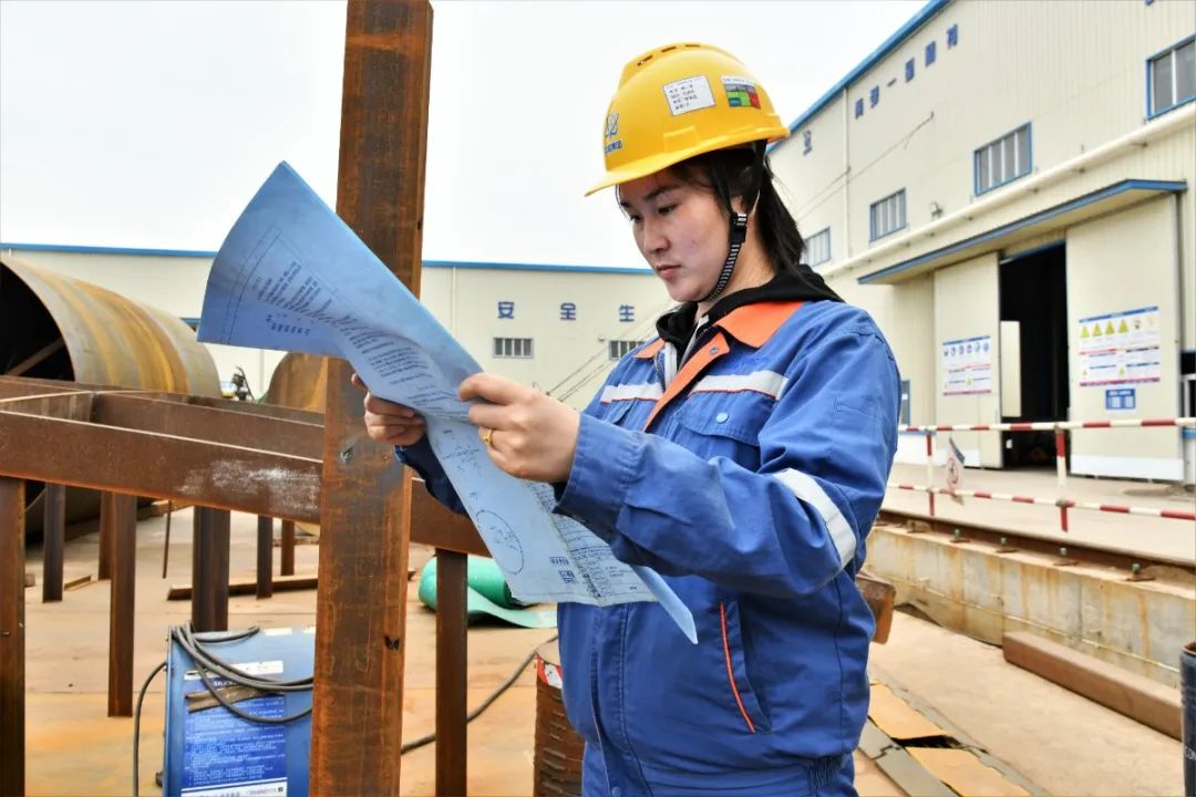 每次早上8点前,无损检测委托发给检测公司之后。她便会去钢结构车间,查看每一道工序是否符合操作规范,仔细检验筒体板的尺寸、弧度和角钢定位是否和图纸相符合。