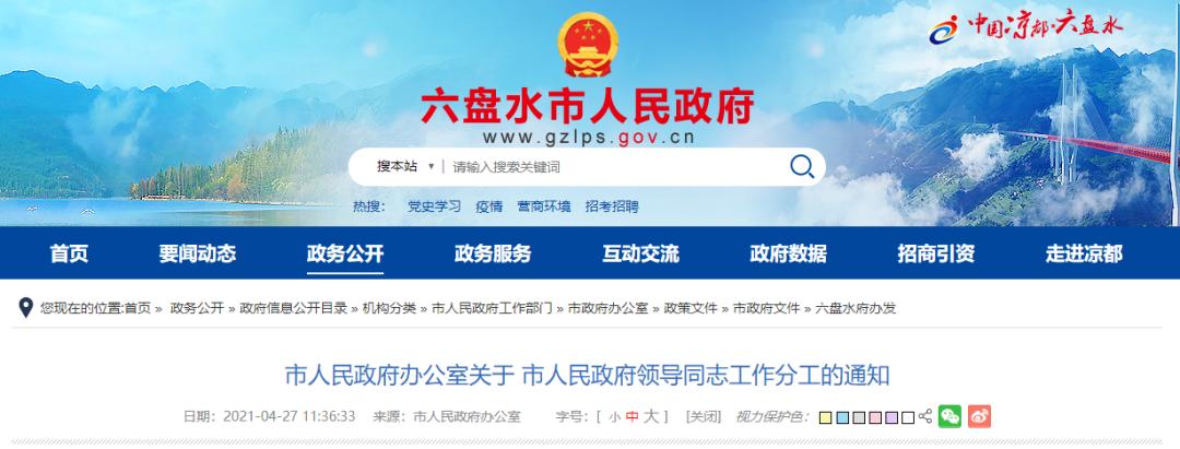 原标题:《权威发布丨六盘水市人民政府领导同志工作分工》