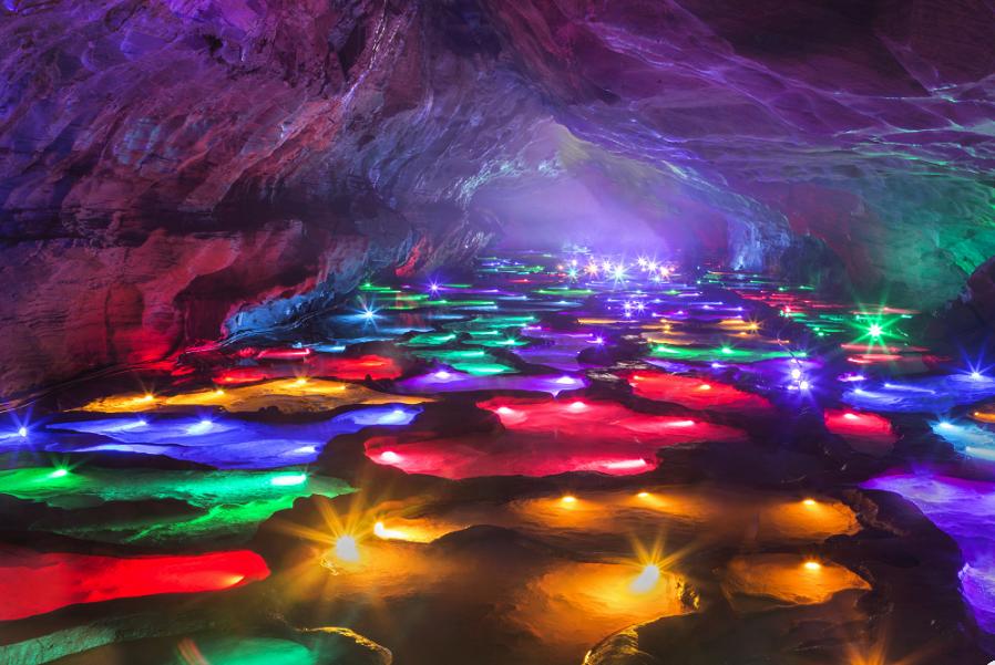 洞内大洞套小洞,再加上奇峰配上精彩的灯光,给人一种梦幻般的感觉,美轮美奂,让人目不暇接。