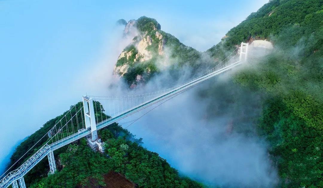 凤凰山玻璃悬索桥在最高峰攒云峰下,位于西山景区与古城景区之间,将黑风口栈道和古城里栈道连接沟通起来,是继张家界景区之后,国内第二座玻璃桥。人们在体验惊险刺激和挑战自我极限的同时,也完成了一次印象深刻的观光之旅。