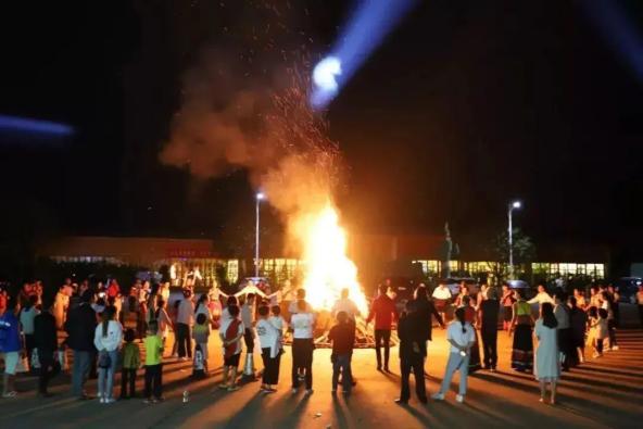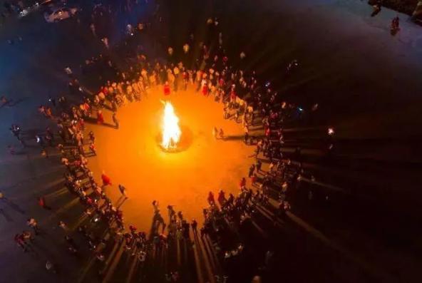 众人围着篝火唱歌跳舞