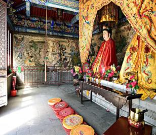 18级台阶之上,是不等边八角形高台,名曰八卦台。正殿龙师殿,大门题联:“一皇始祖万年仰,八卦神图千古谜”。