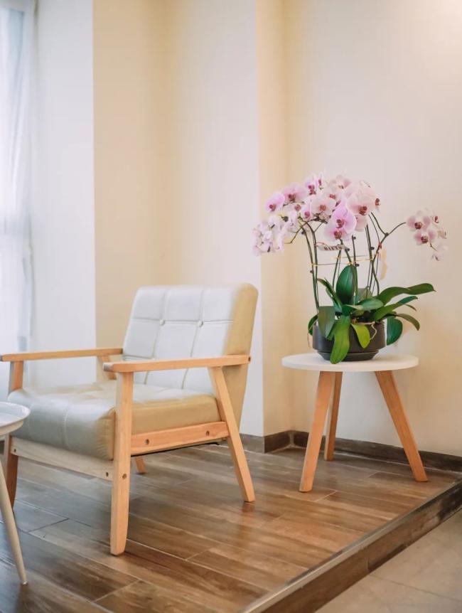 暖色调,木质感营造温馨感。绿植景观充盈着四角,枝繁叶茂,生长出鲜活的气息。