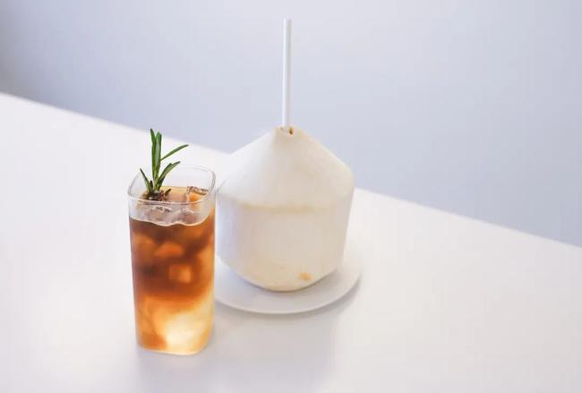 招牌「泰椰咖啡」以泰国椰子水为基底搭配浓缩咖啡,看似不搭边的两款饮品在冰块的融合作用下产生反应。
