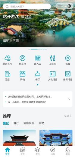 程序内设置的旅游线路是一大亮点,有开封市博物馆、刘少奇在开封陈列馆、刘青霞故居纪念馆等休闲文化一日游,有大相国寺、开封府、万岁山等宋“潮”体验游,更有的经典半日游、2日亲子游、3日嗨玩游等细致贴心的线路推荐。