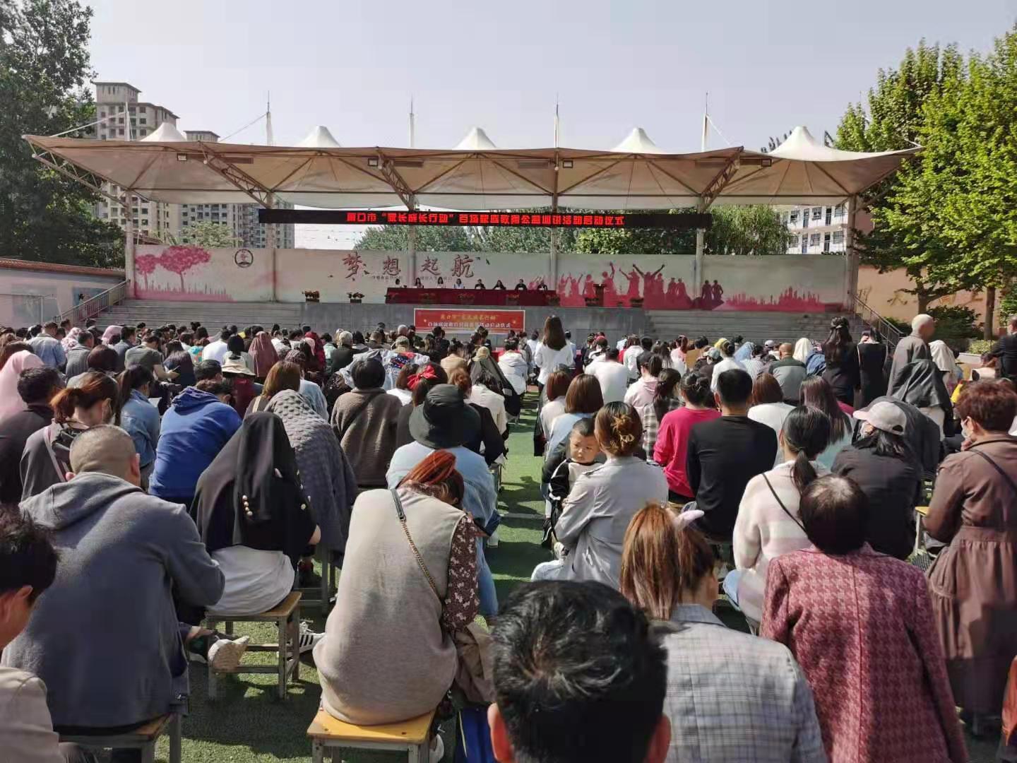 4月30日上午,周口市妇联在枫诚学校启动“家长成长行动”——百场家庭教育公益巡讲活动,市妇联、市民政局、市社科联相关科室负责人以及各县(市、区)从事家庭教育工作的志愿者代表及家长近600人参加活动。