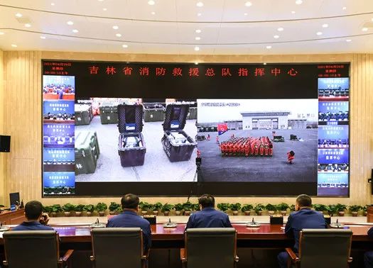 4月29日6时30分,总队模拟西南某省发生特别重大地震灾害,按照党中央、国务院、应急管理部的命令和《应急管理部应对特别重大地震灾害救援预案》,紧急调派吉林省地震灾害救援队和机动突击力量,共600人立即实施跨省增援。王献忠总队长坐阵指挥中心,与正在准备登机的前线指挥员进行连线,强调跨省救援注意事项;侯建德政委指出,要科学施训、确保效果、严格要求,确保绝对安全。“砺剑-2021-2号行动”正式拉开帷幕。