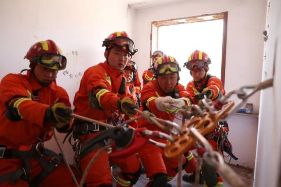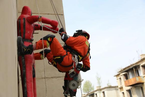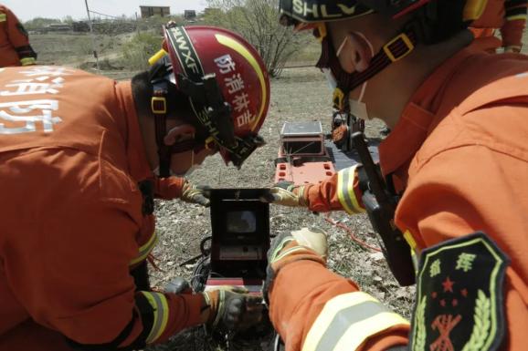 在行动基地搭建的同时,各组作战力量随即投入救援。2台双光无人机迅速升空作业,现场采集传输震区图像,全面收集现场情况,确定重点搜救区域;12名安全员分别进入最佳观察位置,全面落实总队地震救援“三不三停”安全制度;各搜救分队分别携带雷达、音视频等侦测仪器和4只搜救犬,采取“分区作业、交叉搜寻、分类标定”的方法,对灾害现场进行全覆盖、地毯式生命搜寻。2支重型搜救队、8支轻型搜救队根据搜寻结果,按照导调命令开展了狭小空间救援、支撑破拆救援、向上(下)破拆救援、横向破拆救援与支撑搜救、倾斜楼体救援、车辆事故救援等实战化、高难度课目。