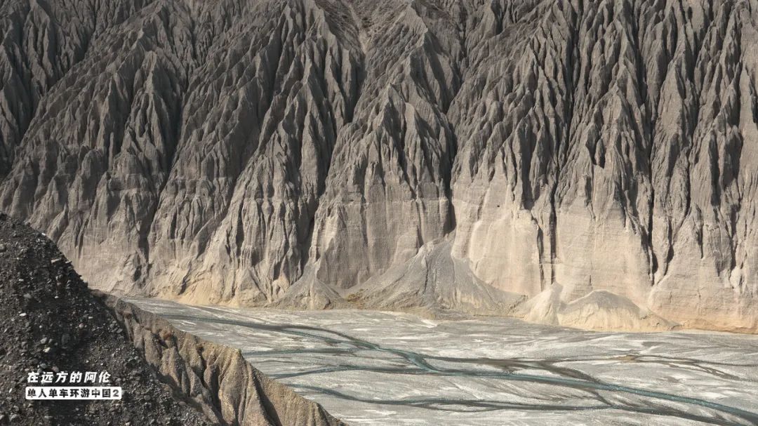 △奎屯大峡谷,两岸的崖壁上是成叶脉垂直分布的沟壑,这些沟壑都是千万年大自然日积月累的杰作。2017年摄。