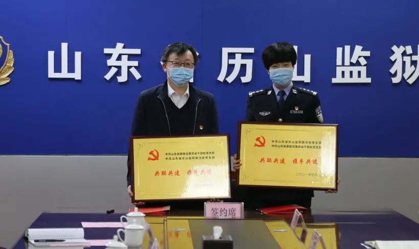 刘建军、杨建华分别代表省委政法委干部处党支部和历山监狱政治处党支部,共同签订了《支部共建协议书》,互换了支部共建名牌,交流了队伍教育整顿工作共建思路,搭建了组织建设互促、党员干部互助、优势资源互享的平台。