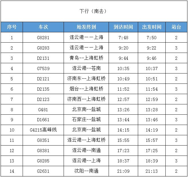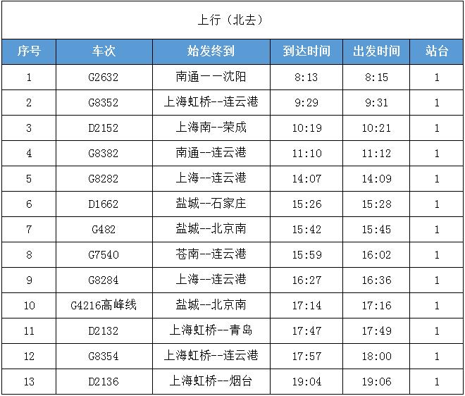 滨海港站最新车次时刻表
