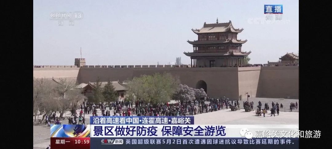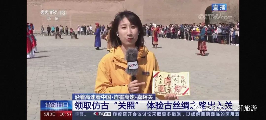 5月3日,央视电视新闻和央视新媒体两个团队分别在嘉峪关关城以直播的形式,通过电视新闻和移动端对连霍高速沿线各地发展及我市关城旅游、文物保护、城市发展等情况进行宣传。