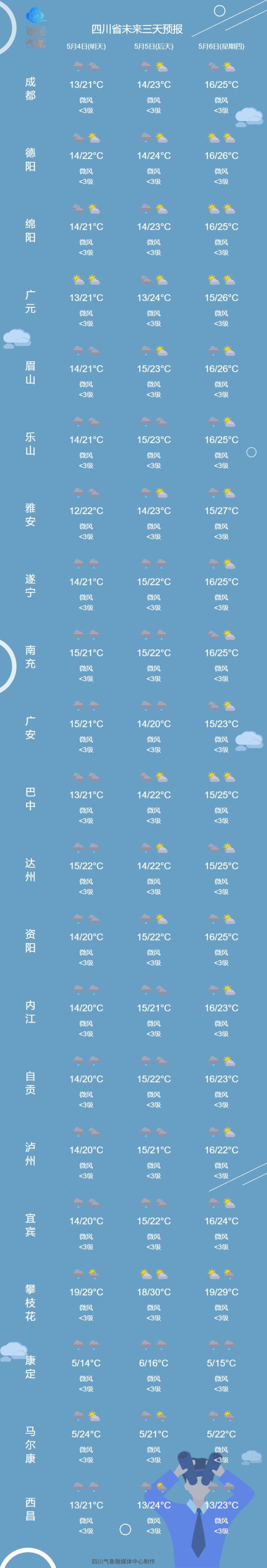 据@成都气象:5月3日20时到4日08时成都市出现雷雨天气,最大降水量出现在天府新区兴隆国家站92.5毫米。天府新区、都江堰、双流、金堂、简阳、青白江、东部新区、邛崃、蒲江和蒲江等地出现瞬间最大风速大于10m/s的大风天气,最大风速在天府新区正兴凉风顶21.9m/s(9级)。