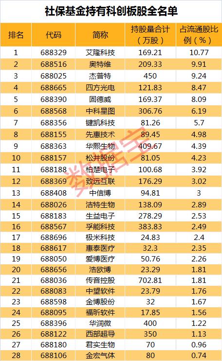科创板运行一年多来,机构关注度逐渐提升。数据宝发布《社保基金持有科创板全名单》中,上榜的科创板股共28只,合计持股量5068万股,持股市值49.32亿元,持有家数及持股市值均创新高。