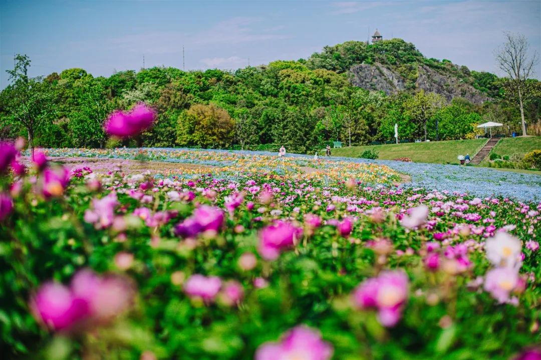 位于辰山植物园3号门的网红花海,占地近2万平方米,其中芍药种植面积达7000多平方米,1万余株。蔬菜园旁边的廊架旁,也同样种植了3000多平方米的芍药花海,和廊架上的紫藤相呼应。其花色丰富,纯白色、粉白色、粉紫色、紫色、深紫红色,细品之下每朵都有不一样的美。
