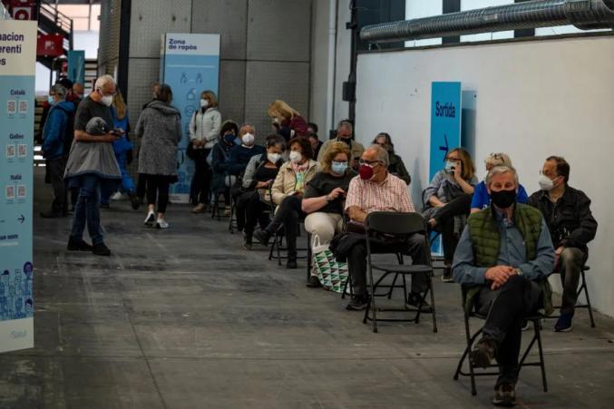 4月26日,人们在西班牙巴塞罗那会展中心接种新冠疫苗后留观。图源:新华社