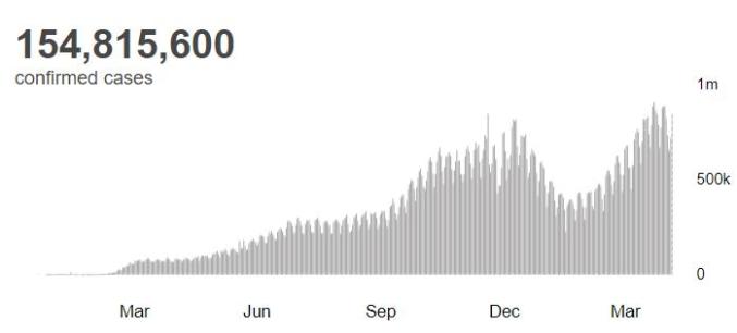 根据世卫组织最新实时统计数据,截至欧洲中部夏令时间5月6日15时39分(北京时间5月6日21时39分),全球累计新冠肺炎确诊病例154815600例,累计死亡病例3236104例。6日全球新冠肺炎确诊病例新增847537例,死亡病例新增14777例。