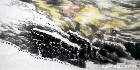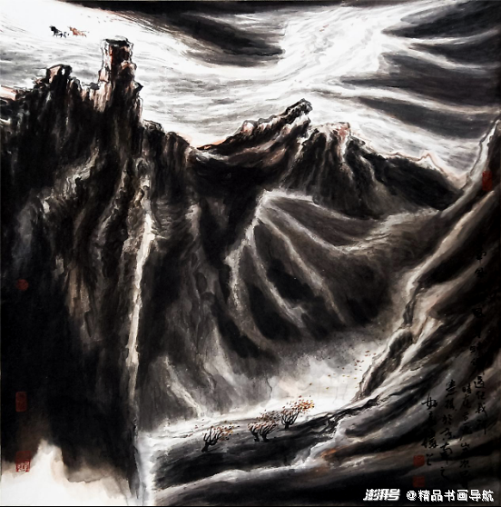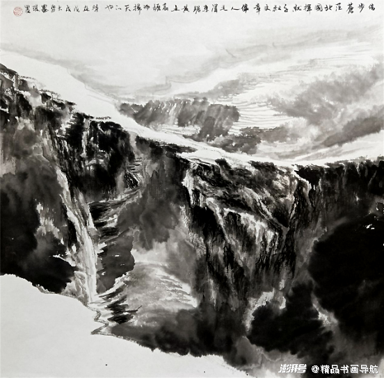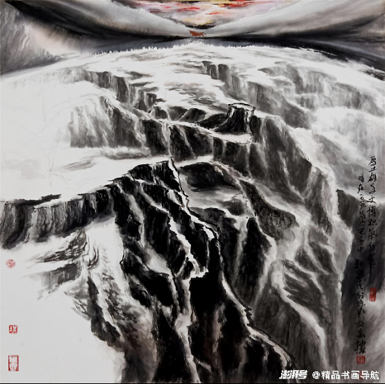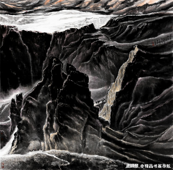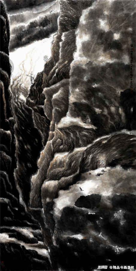 孟宪琪的山水画作品展现出天之际、地之涯的视野,就好像是把崇山峻岭从其巅峰部位突然打开,推到了观者目前。在这里,我们既能极目骋望,又能与山同游。古人说:“真山水之川谷,远望之以取其势,近看之以取其质。”然而在孟宪琪的画中,我们却倍感势不掩质、质不易势;而且两种效果合而为一,超越于视觉之上,成为一种“具身性的”(Embodied)审美在场(Be present)。