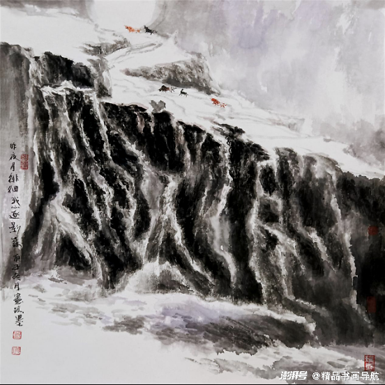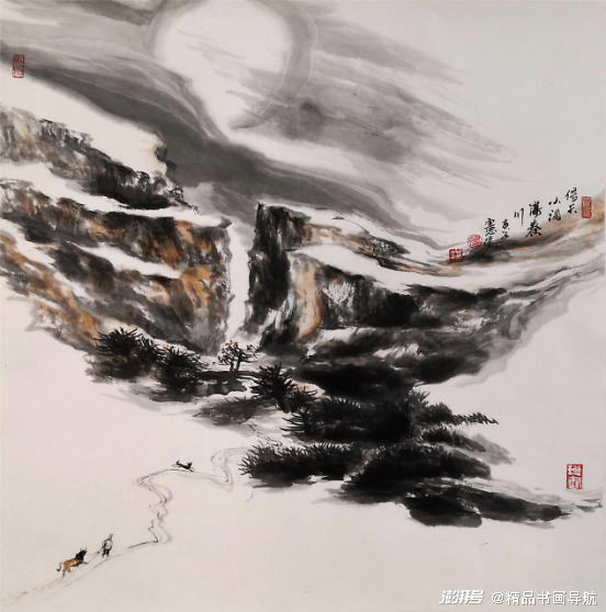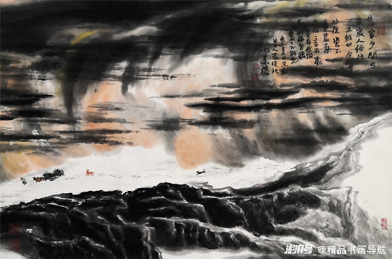 作品《春风何时渡玉门》、《羊年大雪图》等与社会属性的密切关系令人神殇不已,演绎了人间无数悲剧的苍凉及无奈。他给我们营造的气氛不是魏晋时文人隐逸遁迹山林的闲逸情绪,而是由山水风物交织在一起的对万物苍生命运见证和关注的情结。如此他的画面符号集合便承载了更深更广意义上的中国文化精神的内涵和现实精神。
