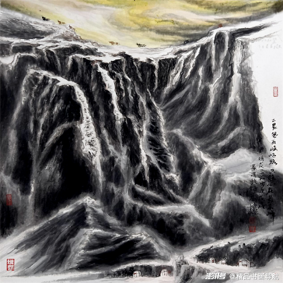品读孟宪琪笔下的黄土高原,让人震撼的是广阔无垠的视野,让人感动的是“坚韧顽强”的黄土地精神,画面中的每一线条、每一墨块,逐渐构建出古拙雄浑的黄土高坡,并幻化出一首土地赞歌,无言却直入人心。