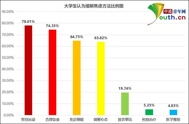 大学生认为缓解焦虑方法比例图。中国青年网记者 李华锡 制图