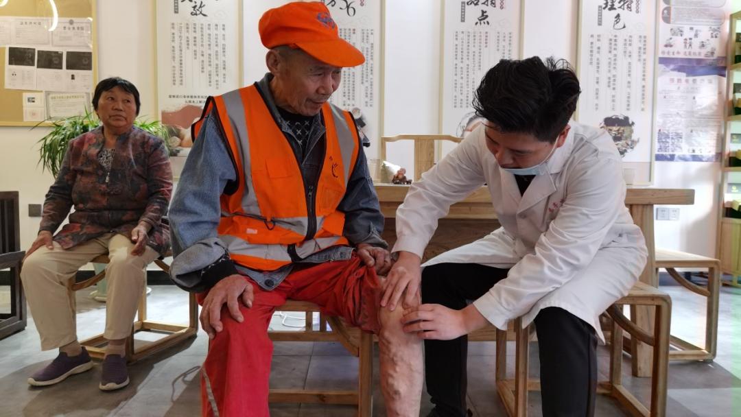 前来问诊的环卫工人们因工作性质大多在腿部膝关节、肩颈、腰部等部位出现疼痛和酸软的状况,严重的甚至存在腿部静脉曲张,膝盖存有积液,肩颈僵硬影响头部供血不足等。理疗师们根据每个患者的具体状况安排相应的推拿按摩、针灸、膏药等理疗方式为其放松肌群,舒缓疼痛。