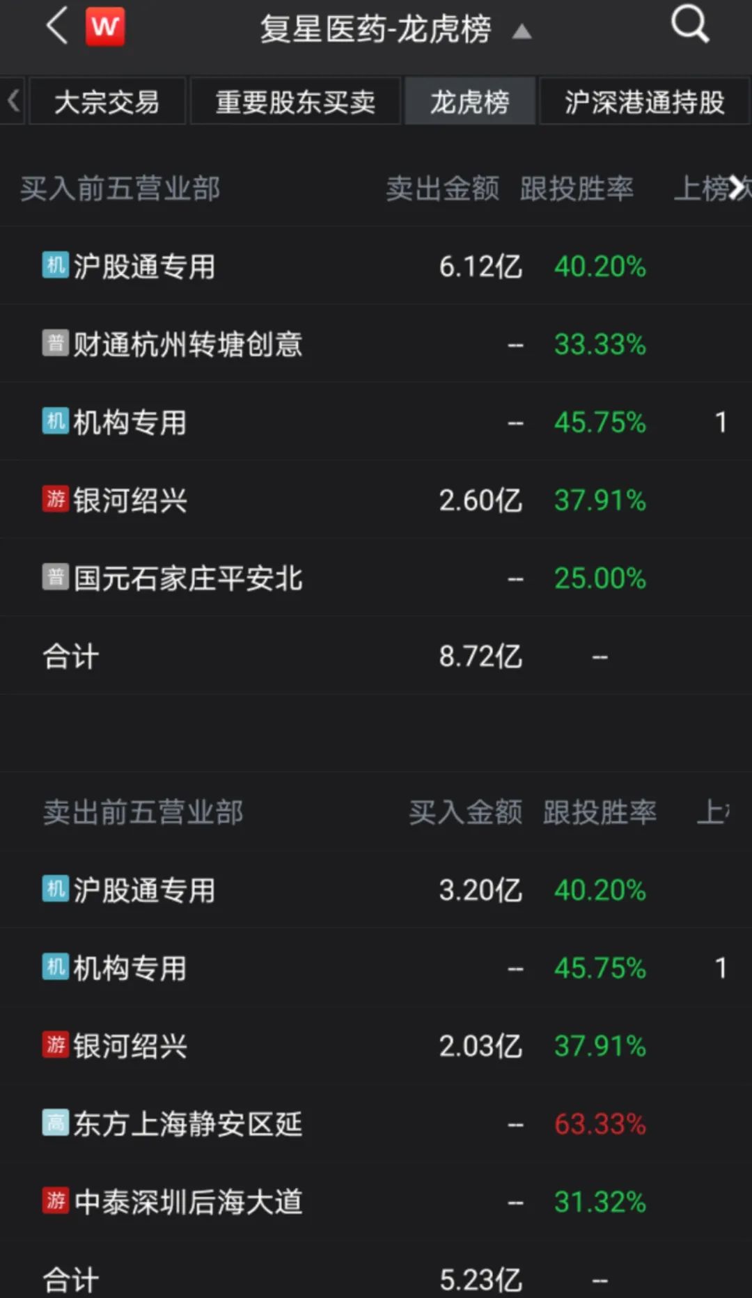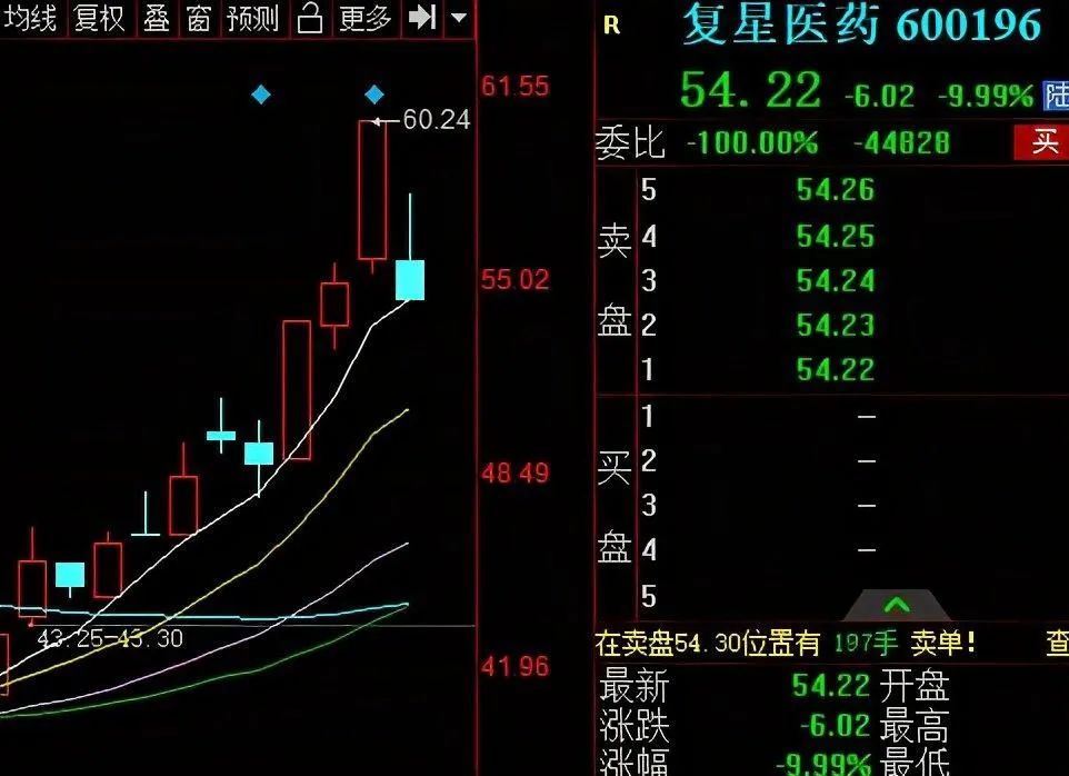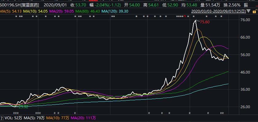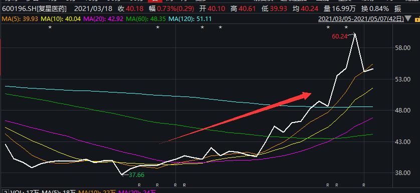 消息一出,复星医药A股强势涨停,收获3个交易日内的第二个涨停。短期其股价从底部37.66元疯涨至60.24元,不到四十天时间涨幅高达60%,成功收复年初跌幅。