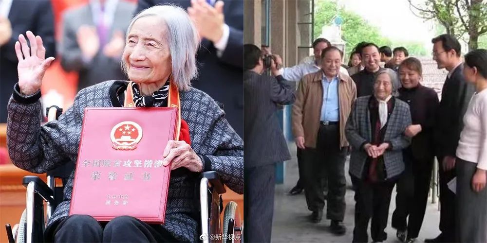 全国脱贫攻坚总结表彰大会上,夏森奶奶感人瞬间