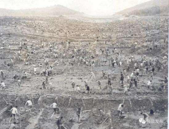 在绵延41.29公里的工地上,30万人组建了7个民工团、149个营、1805个连。他们发扬不怕脏、不怕累的拼搏精神,吃大锅菜,睡地铺,靠着肩膀、扁担、畚箕,仅用43天时间,完成长山河一期土方开挖工程。