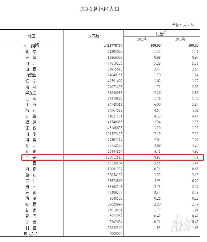 原标题:《最新数据!全国人口,14.1178亿!广东常住人口,1.26亿!》