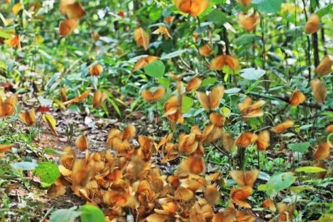 入夏后,竹叶与本地壳斗科植物的腐叶,会散发酒一样的气息,是箭环蝶的最爱。此外,蝴蝶具有特殊的记忆或遗传基因,经过标记监测,即使迁飞到东北、西北等地,它们仍能精准地回到气候适宜、食物丰富的马鞍底的“故乡”,所以每年都有几千万乃至上亿的蝴蝶在这里羽化。