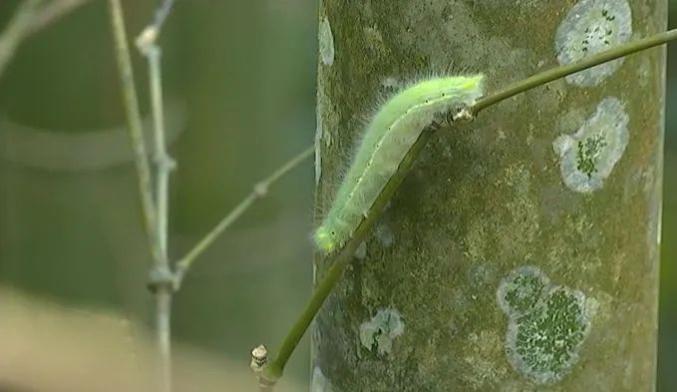 箭环蝶主要分布在我国南方,翅展可达100至110毫米,一次可产卵80至120粒,林间中华大节竹硕大的叶片,就是它们天然的“产床”,卵孵化成幼虫后,主要靠竹类为食。那么,面对如此密集的蝶类聚集,是否会对竹林造成影响?