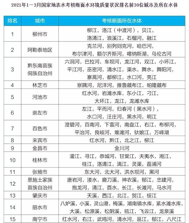 近日,生态环境部通报了3月和1—3月全国地表水、环境空气质量状况,其中,黔东南州国家地表水考核断面2021年1-3月水环境质量状况名列全国第3位,是贵州省排名最高的市州,全国排名同比上升8位,较2019年同期上升23位。