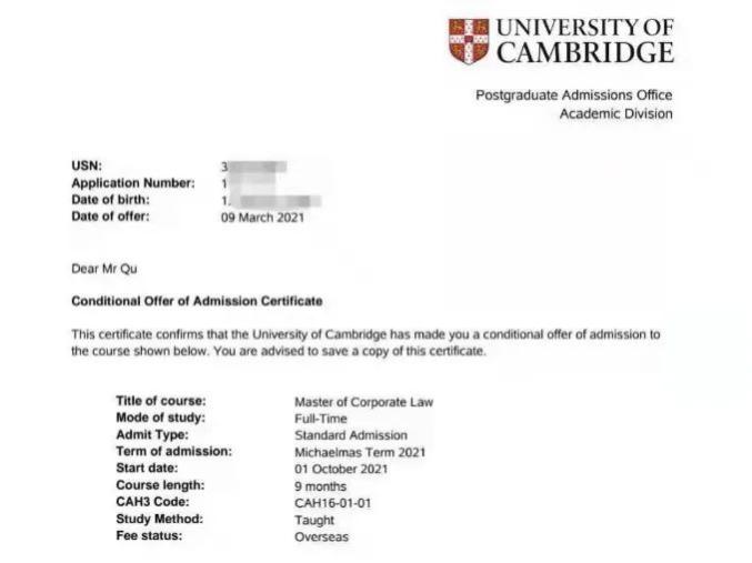 紧接着,剑桥大学公司法硕士offer来了;一个多月后,牛津大学法律与金融硕士offer也来了!“我开始感到不可思议!”接连收到三所世界顶级名校的录取通知,屈煜博在感叹幸运垂青的同时,也不否认自身实力。