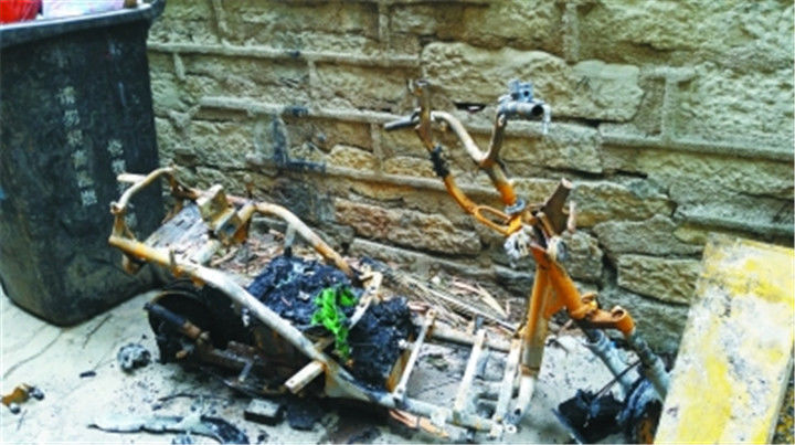 2015年4月20日晚,贵阳市旭东路某小区,一辆充电的电动车起火引发火灾