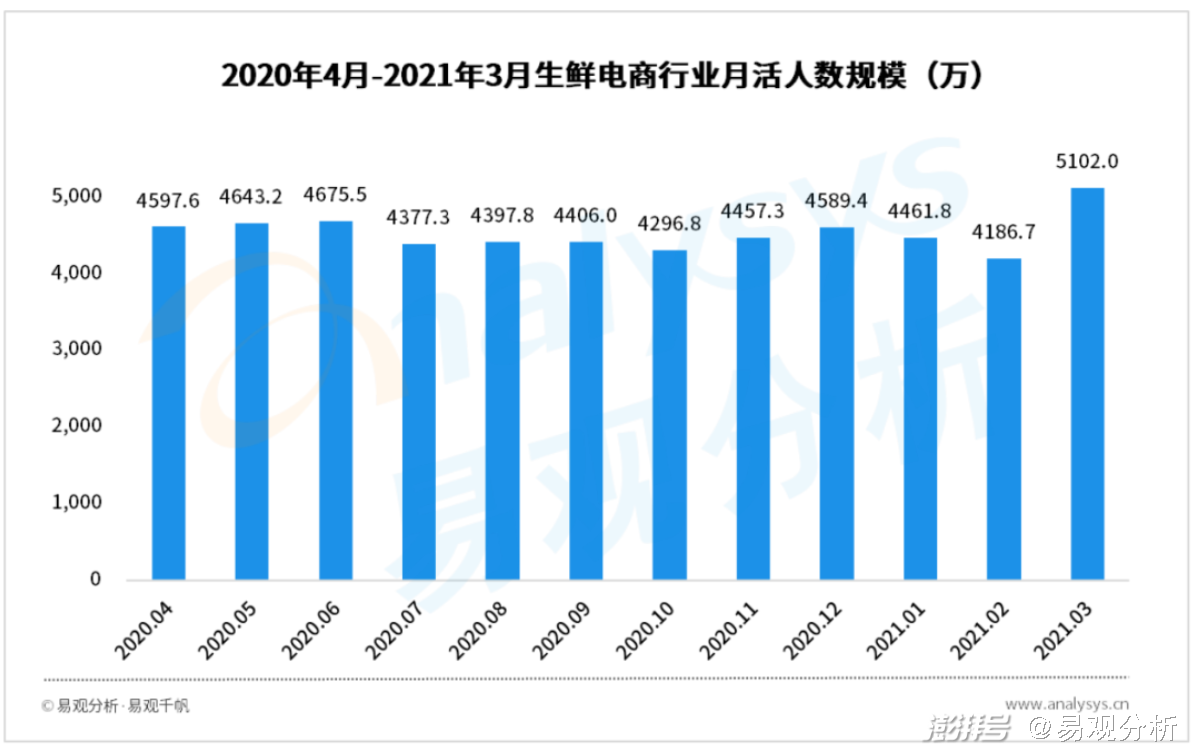 易观分析:第1季度,生鲜电商用户活跃度波动较大。春节期间由于城市用户回乡过年,使得生鲜到家的需求大幅减少,2月生鲜电商行业的用户活跃度明显降低。但到了3月,随着人们相继返工,生鲜消费需求重新恢复,使得生鲜电商的月活人数有了明显的反弹。