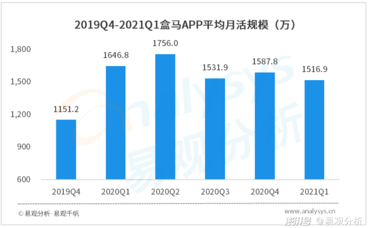 盒马APP平均月活人数趋势分析