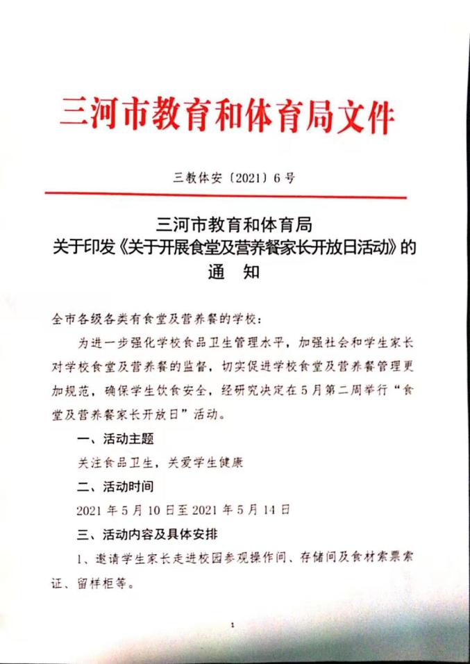 为进一步提升学校食品卫生安全管理水平,强化社会和学生家长对学校食堂及营养餐工作的监督,增进家长对膳食及食堂管理工作的了解,三河市教育和体育局积极组织开展“学校食堂及营养餐家长开放日”活动。