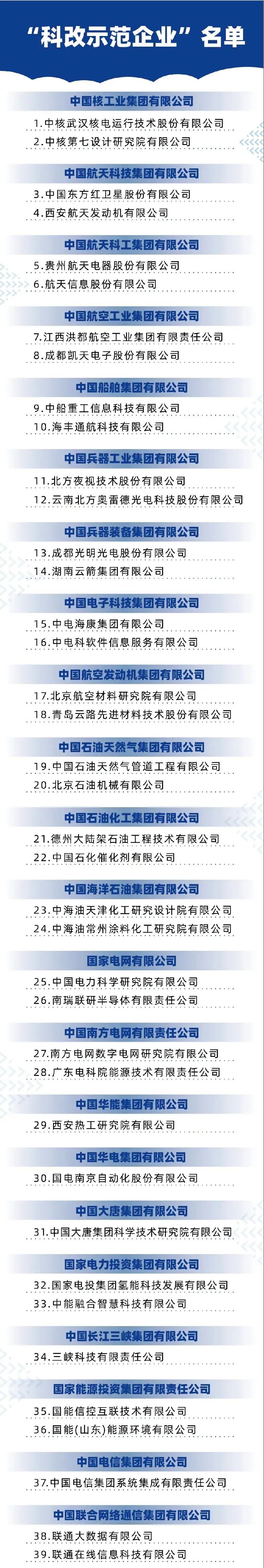 日前,国务院国资委网站公布最新“科改示范企业”名单,详细如下: