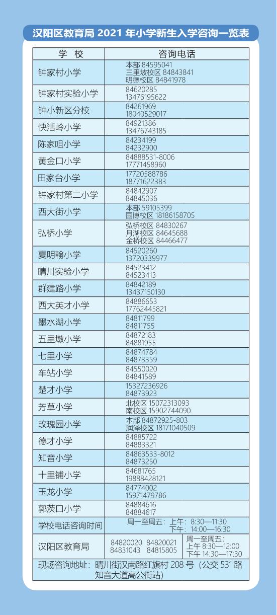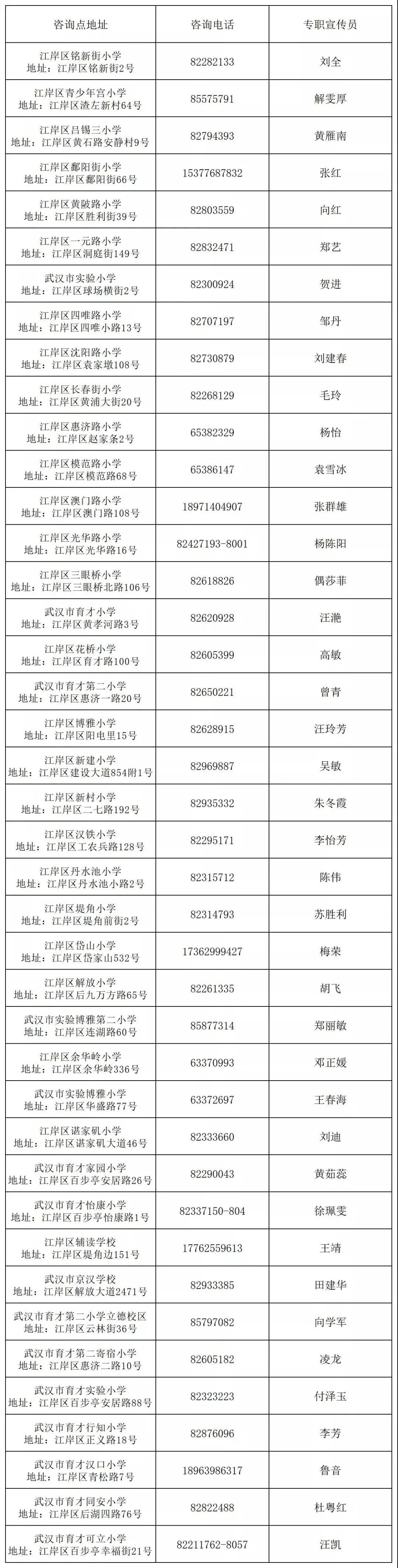 江岸区2021年小学入学政策咨询点及咨询电话。